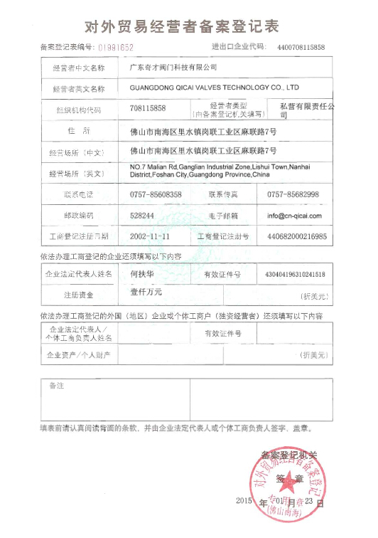 主頁 > 企業(yè)榮譽(yù) > 企業(yè)榮譽(yù) > 對外貿(mào)易經(jīng)營者備案登記證2015